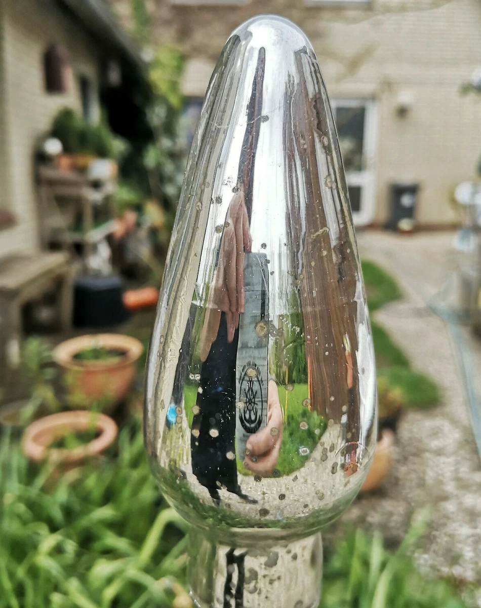Glaskugel Gartendeko Kugel Obelisk silber Rosenkugel Glas Antik