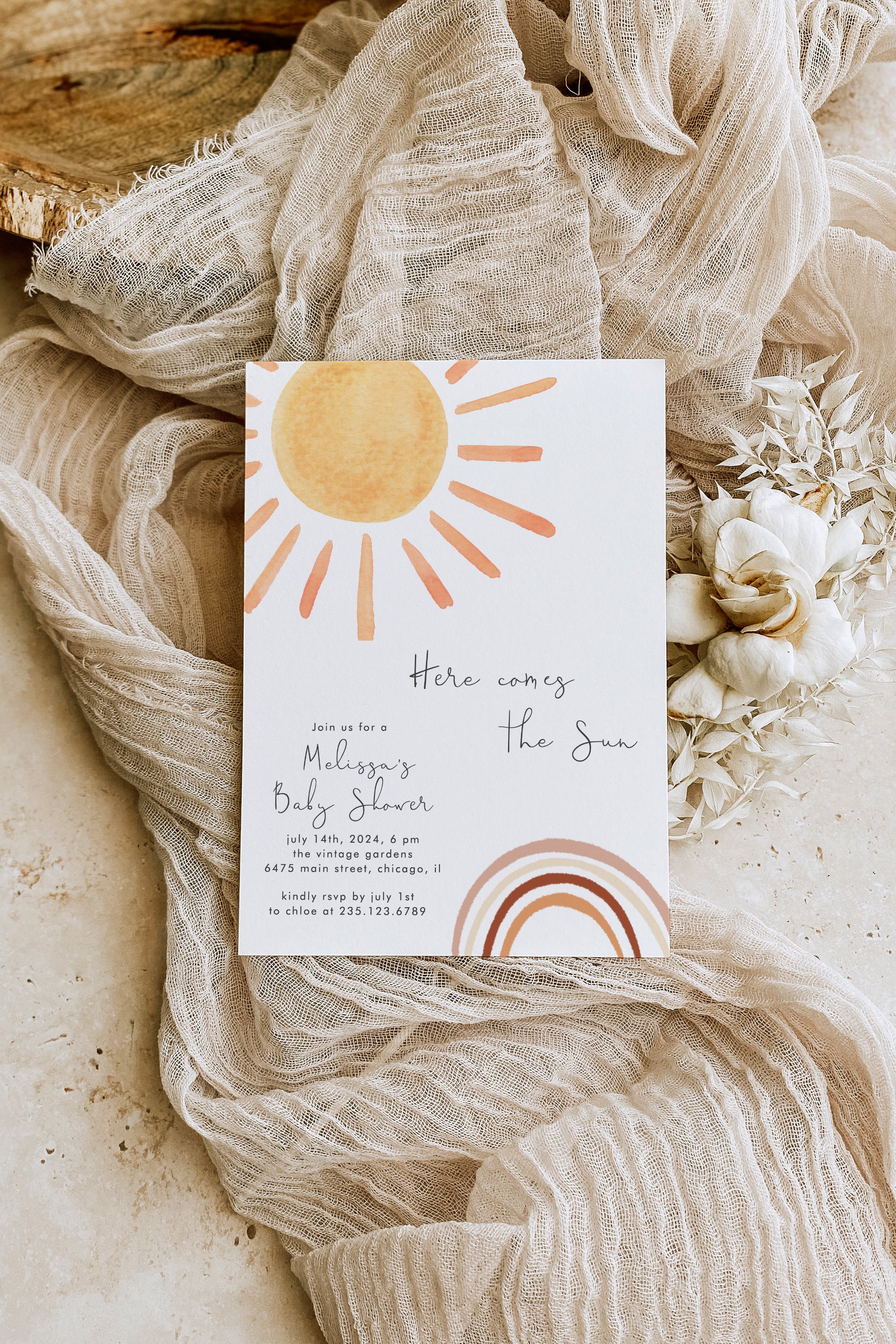 Here Comes the Sun Baby Shower Invitation Editable Boho Etsy Finland